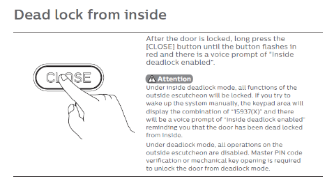 👉 Unlocking the door from the inside will automatically turn off Privacy / Dead Lock mode.
