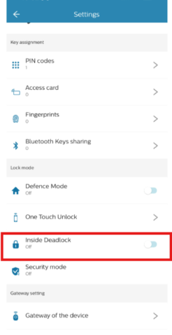 Toggle the switch ON or OFF to enable or disable Privacy / Dead Lock mode.